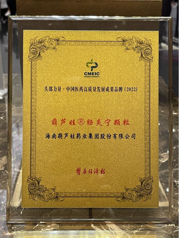 在本次发布会上,公司重点产品GA黄金甲牌肠炎宁颗粒同时荣膺“头部力量·中国医药高质量发展成果品牌(2022)”。GA黄金甲牌肠炎宁颗粒(2g),传承经典名方,临床广泛用于成人及儿童急慢性胃肠炎、腹泻等疾病的治疗,由于其杰出的临床价值,被纳入国家中医药管理局相关专家项目组制定的《中成药治疗小儿腹泻病临床应用指南》。