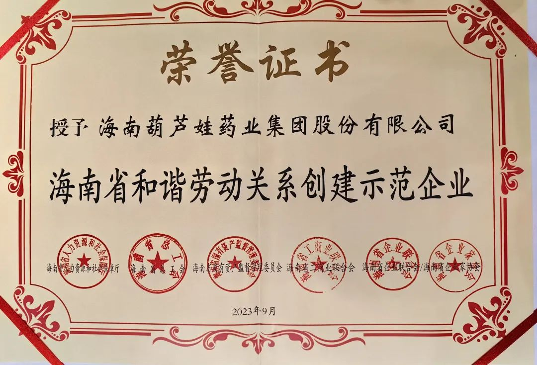 GA黄金甲药业集团获评“海南省和谐劳动关系创建示范企业”