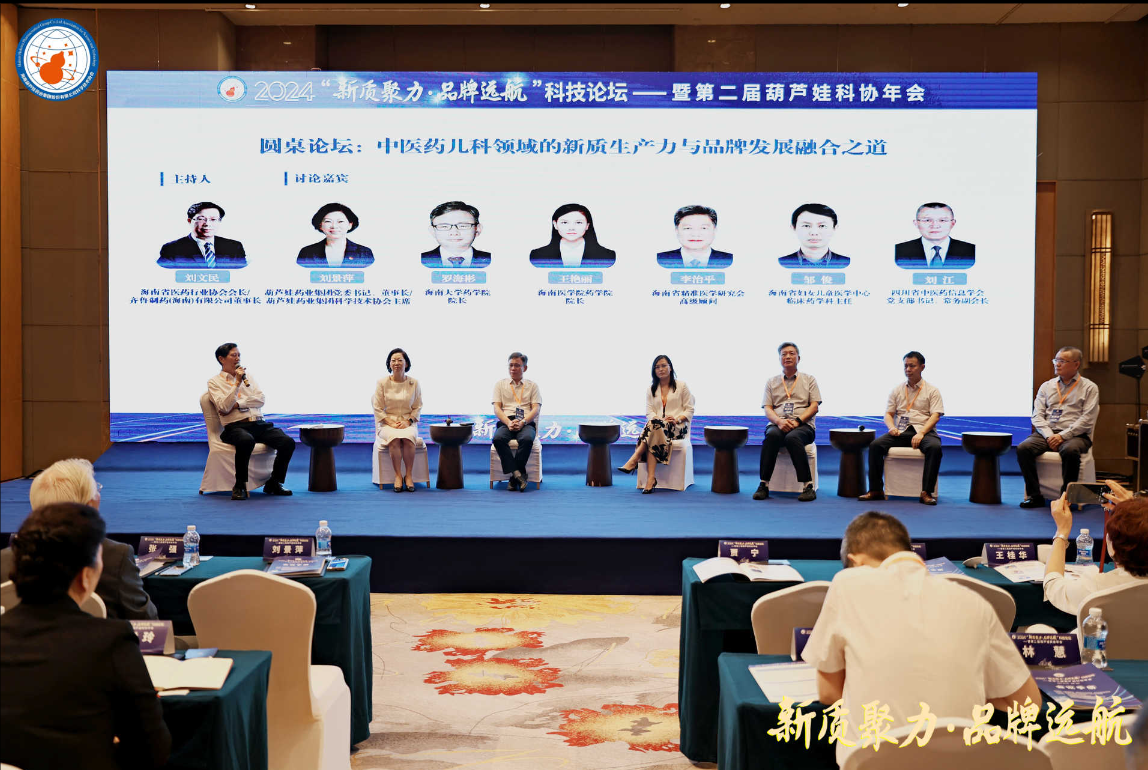GA黄金甲药业集团党委书记、董事长刘景萍,海南大学药学院院长罗海彬、海南医学院药学院院长王艳丽、海南省精准医学研究会高级顾问李治平、海南省妇女儿童医学中心临床药学科主任邹俊,四川省中医药信息学会党委书记、常务副会长刘江等,在主题为“中医药儿科领域的新质生产力与品牌发展融合之道”的圆桌论坛中积极献策。海南省医药行业协会会长、齐鲁制药(海南)有限公司董事长刘文民主持论坛。